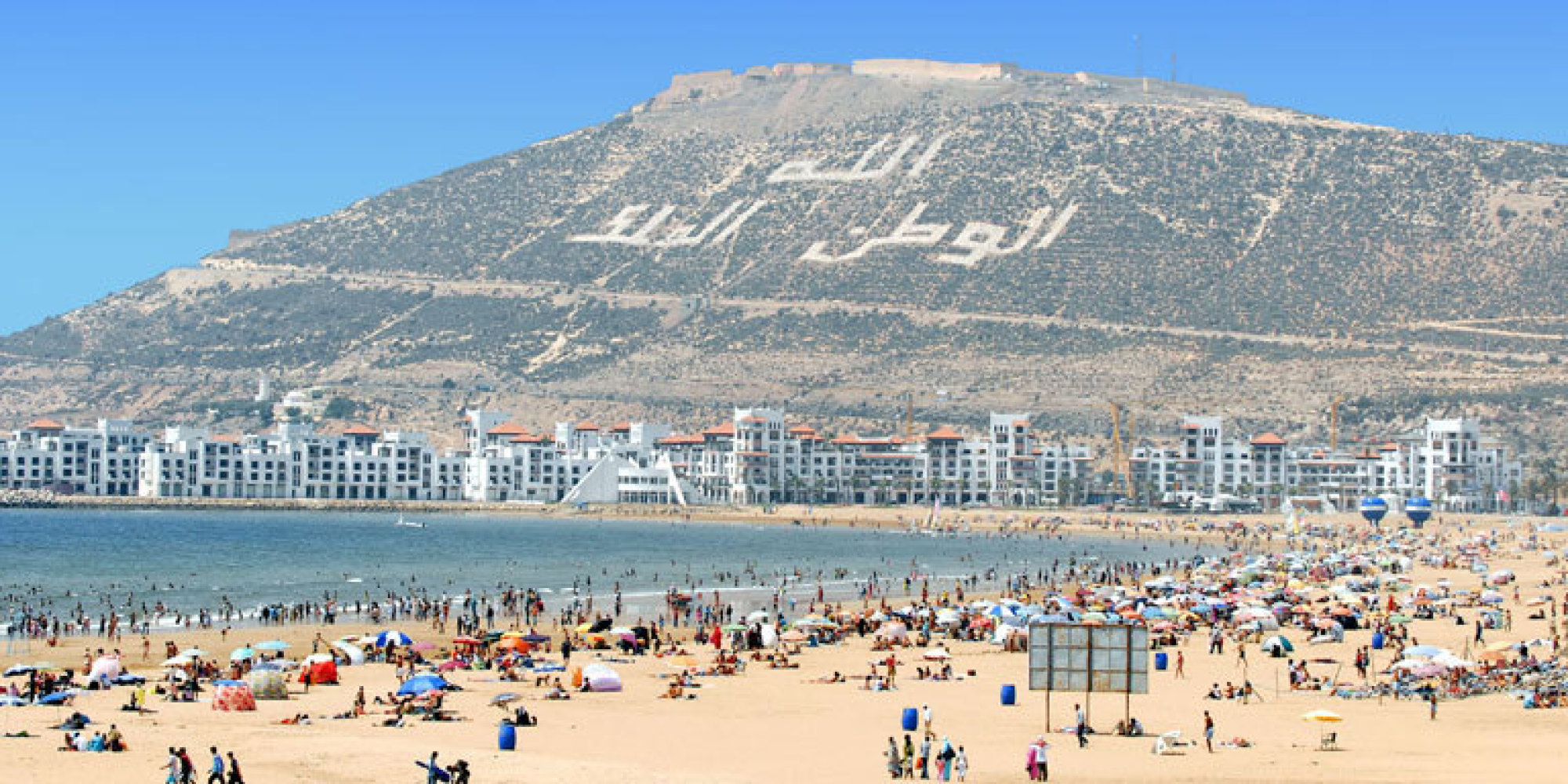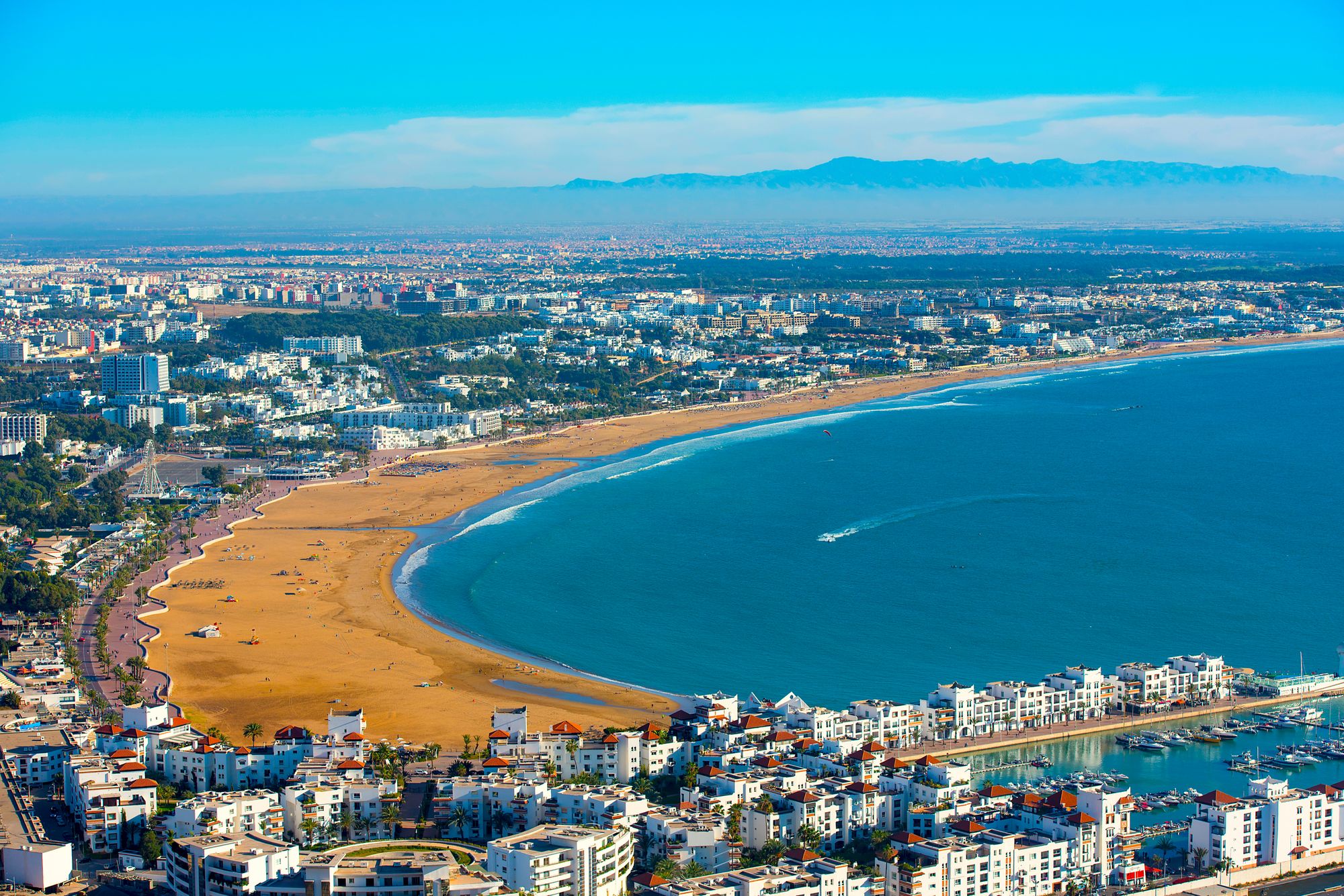 Tómese un momento en la playa para admirar la extensión de arena blanca bañada por el Atlántico, que ha ayudado a Agadir a convertirse en un popular destino vacacional.